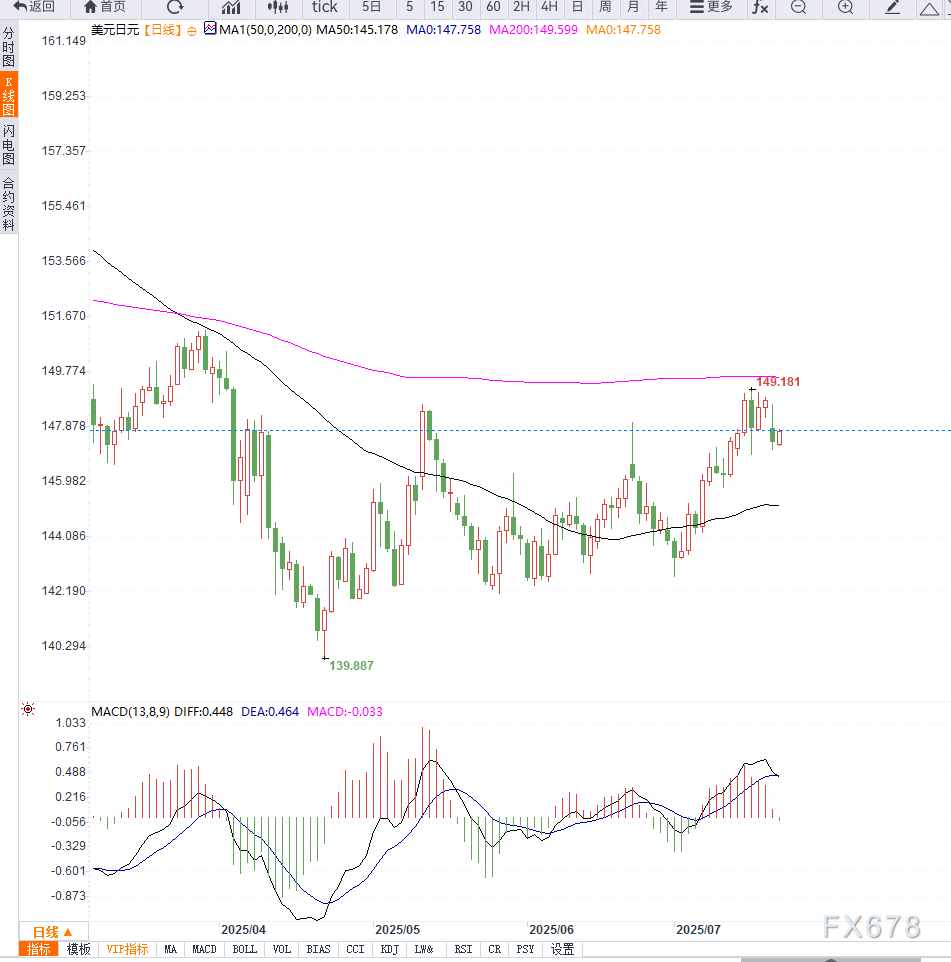 从技术面看,美元兑日元正测试148.00关口的突破可能性,若日美贸易谈判迟迟无果,且日本财政政策持续模糊,则可能进一步推高汇率;但若美联储在7月或9月实际开始降息,美元上行动能或将受限,USD/JPY可能重返145.00下方震荡。