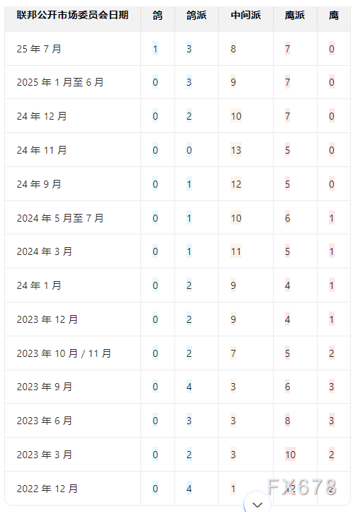 鸽派(2-3人):更关注劳动力市场风险,支持尽早降息。如理事克里斯托弗·沃勒明确主张7月降息25个基点。