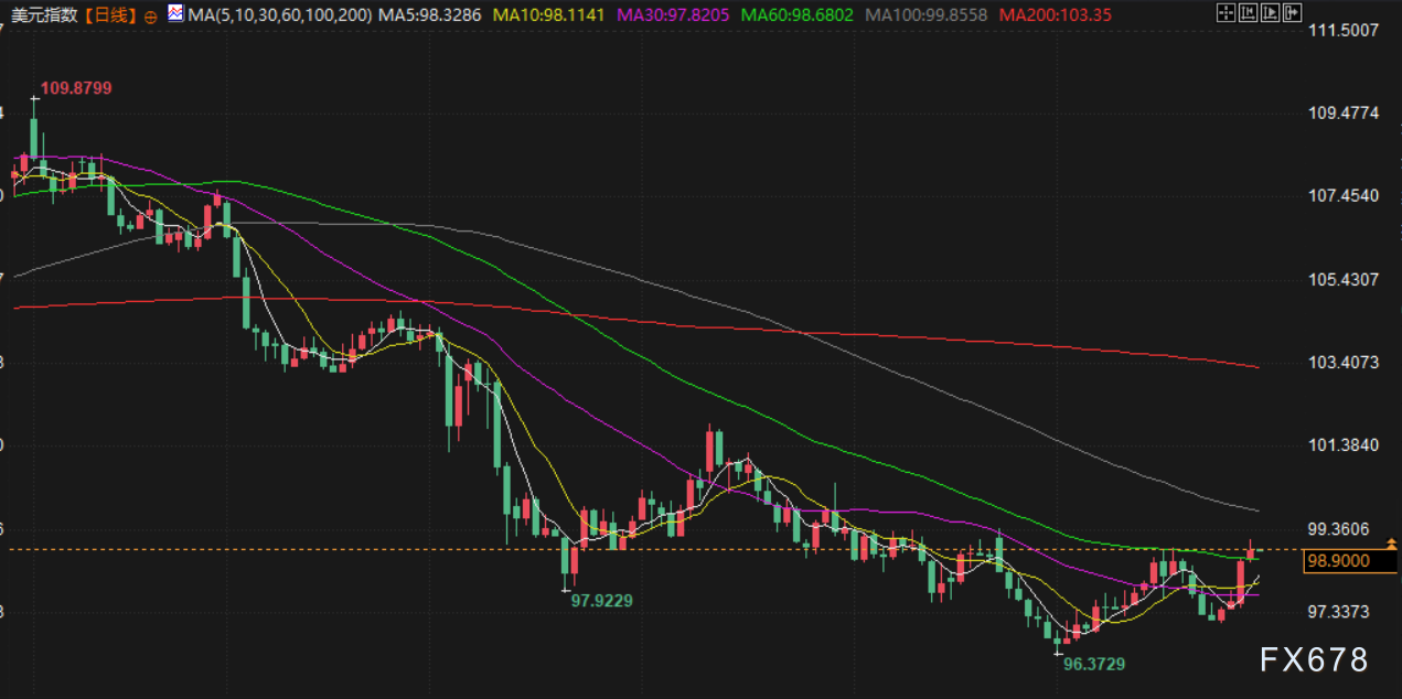 衡量美元兑一篮子货币(包括日元和欧元)汇率的美元指数上涨 0.30%至 98.91,创下 6 月 23 日以来的最高水平。该指数将创下今年以来的首个月线涨幅。