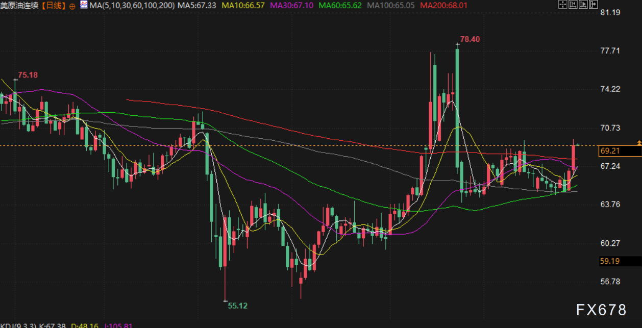 油价周二上涨超过3%,因美国总统特朗普就乌克兰战争向俄罗斯施加更大压力,以及对美国与其主要贸易伙伴之间的贸易战正在减弱持乐观态度,布伦特原油期货收高3.53%,报每桶72.51美元;美国原油期货收涨3.75%,报69.21美元。两大合约均创下自6月20日以来的最高收盘价。