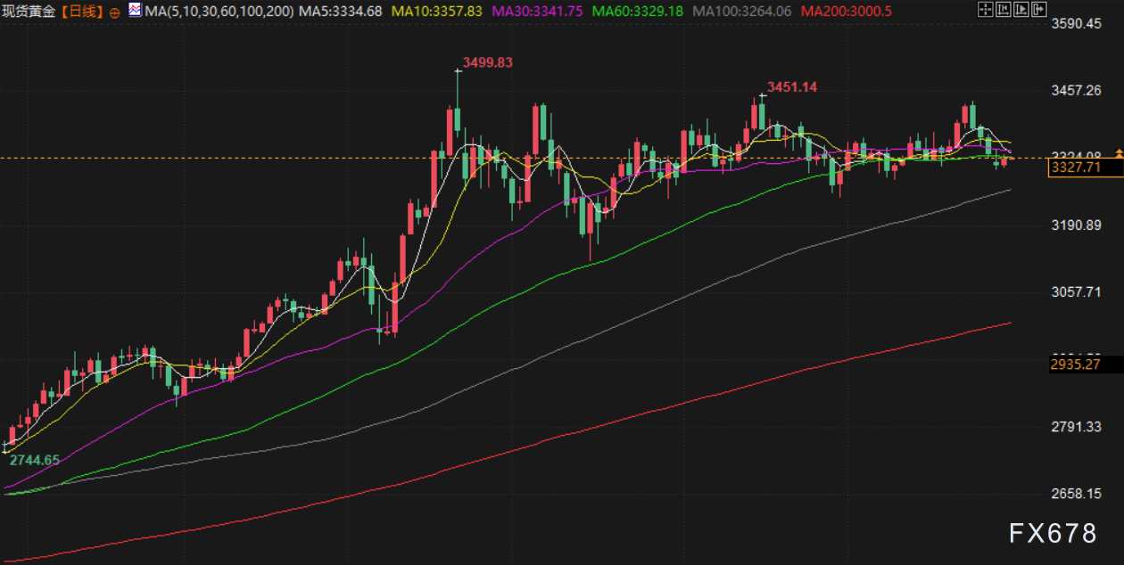 金价周二走高,投资者在等待贸易谈判和美联储政策会议的结果。现货金上涨0.4%,至每盎司3327.69美元。周一,在美国和欧盟达成框架贸易协议抑制了黄金的避险需求之后,黄金价格创下了自7月9日以来的最低点。美国期金收高0.4%,报3324美元。