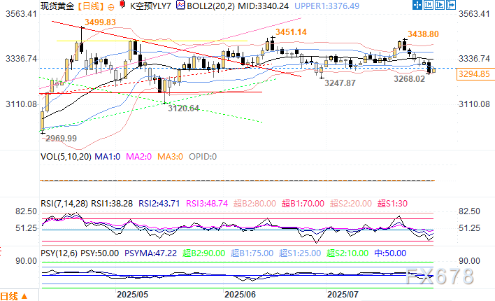 市场对美联储声明的最初反应是金价再度出现一些波动。周三(7月30日)现货黄金收于3274.88美元,跌去51.47美元,当日下跌1.55%,日内低点3268.02美元。周四亚市早盘,现货黄金回升至3296美元附近,原3300美元支撑位触手可及。