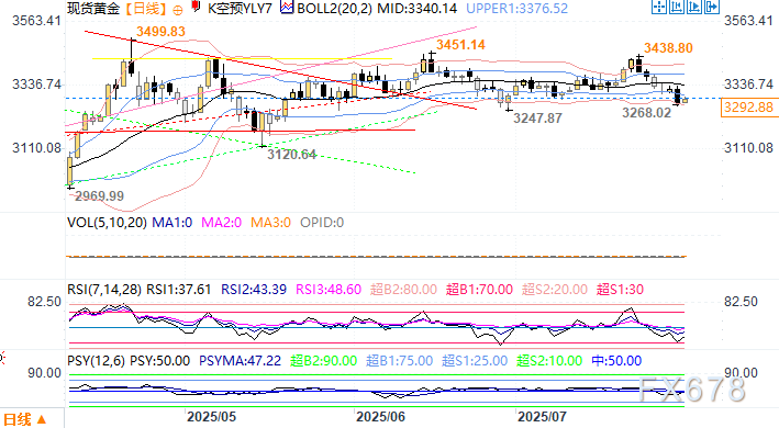 北京时间7月31日10:40 现货黄金 报 3291.02 美元/盎司