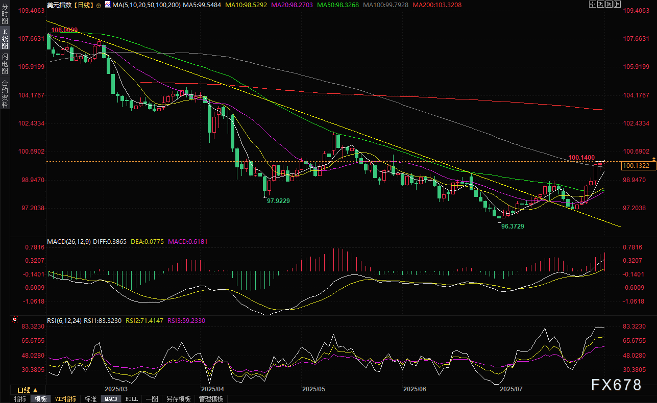 短期内,美元指数已连续六天上涨,14天相对强弱指数(RSI)达到自1月以来最超买状态,除非就业报告特别强劲,否则存在获利回吐的风险。下行方面,99.25的先前阻力转为支撑将是关键观察水平,中期前景在此区域上方仍总体向好。