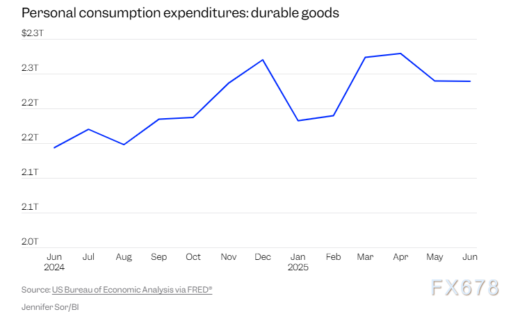 美国人已经开始收紧他们的钱包。尽管总体上6月份消费者支出有所增加,但耐用商品的个人消费支出,即美国人在物品上的支出的一个衡量标准,6月份下降到了2.24万亿美元,比四月的峰值下降了大约400亿美元,根据经济分析局的数据。