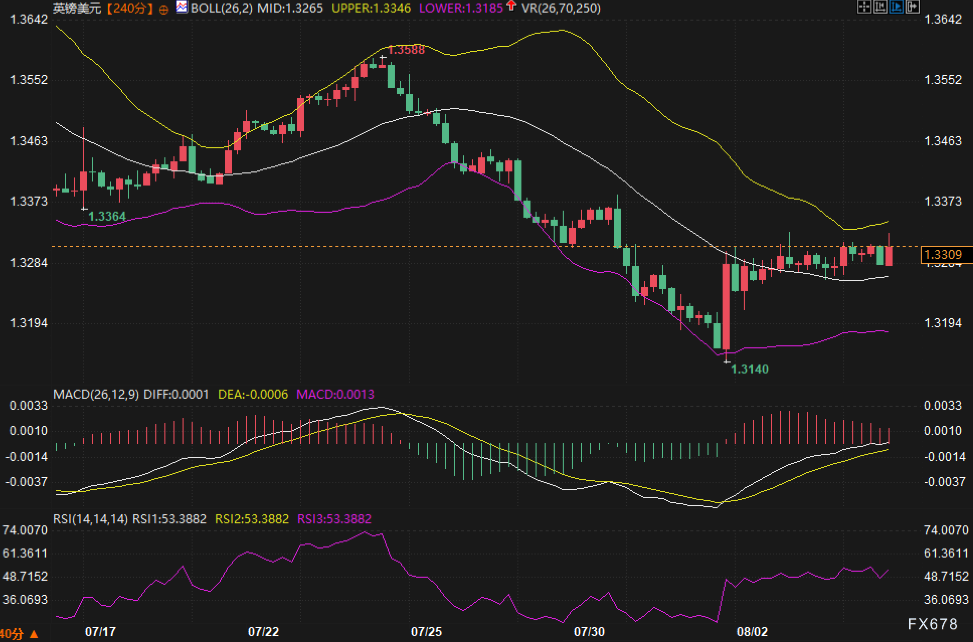 盈凯外汇官网报道——周三(8月6日),英镑/美元在1.3300关口附近窄幅波动,汇价横盘整理状态延续数日,市场进入典型的消息前等待模式。交易员关注的焦点集中于本周两大重磅事件:英国央行利率决议以及美联储人事变动所带来的潜在政策方向变化。