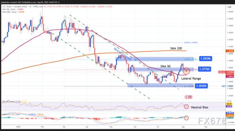 盈凯外汇官网报道——周四(8月7日)亚洲时段,美元兑加元微跌0.04%,现交投于1.3733附近,早些时候曾小幅下探至1.3728,为7月29日以来新低。该汇价在7月底曾录得日线六连阳,势头强劲,但本周逆转,连续多日承压。这一走势由美联储变动的利率政策预期与加拿大央行政策分化及美国元指数内涵基本面变化而驱动。