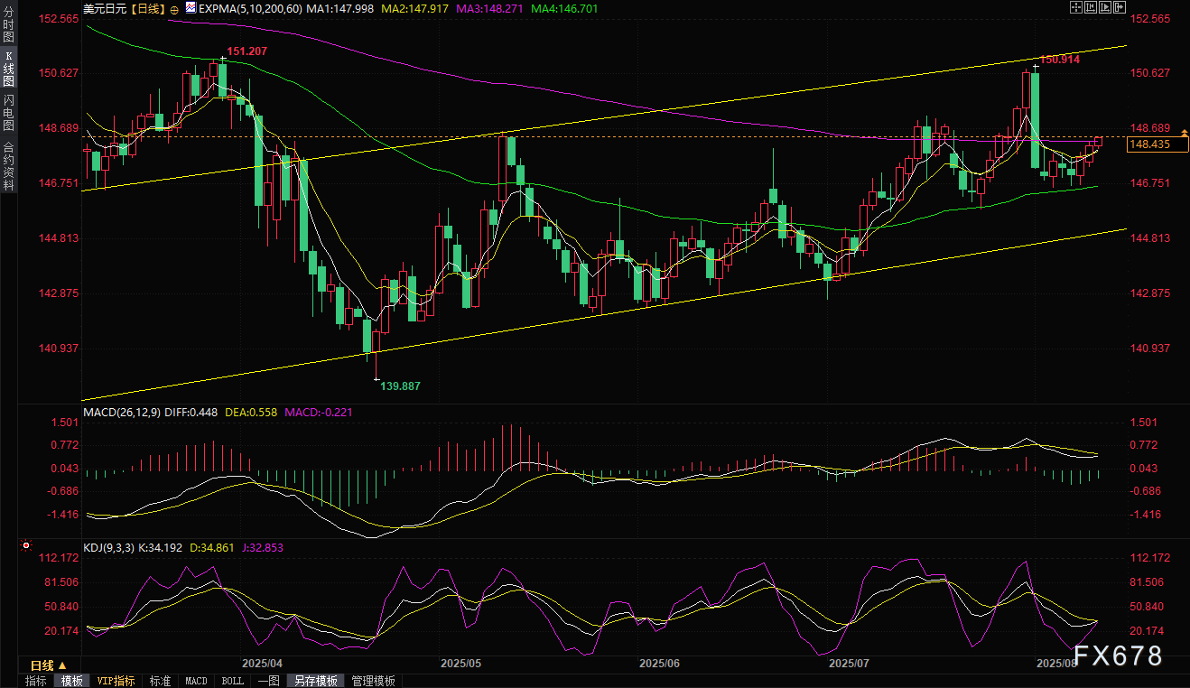 若价格未能有效突破149.00关口上方阻力区,市场焦点将转向潜在次高点的形成(即头肩顶形态的"右肩")。尽管短期动能可能仍然利好美元,但整体趋势表明,一旦这波修正行情结束,随着美元重启对日元的下跌趋势,美元兑日元可能转向下行。