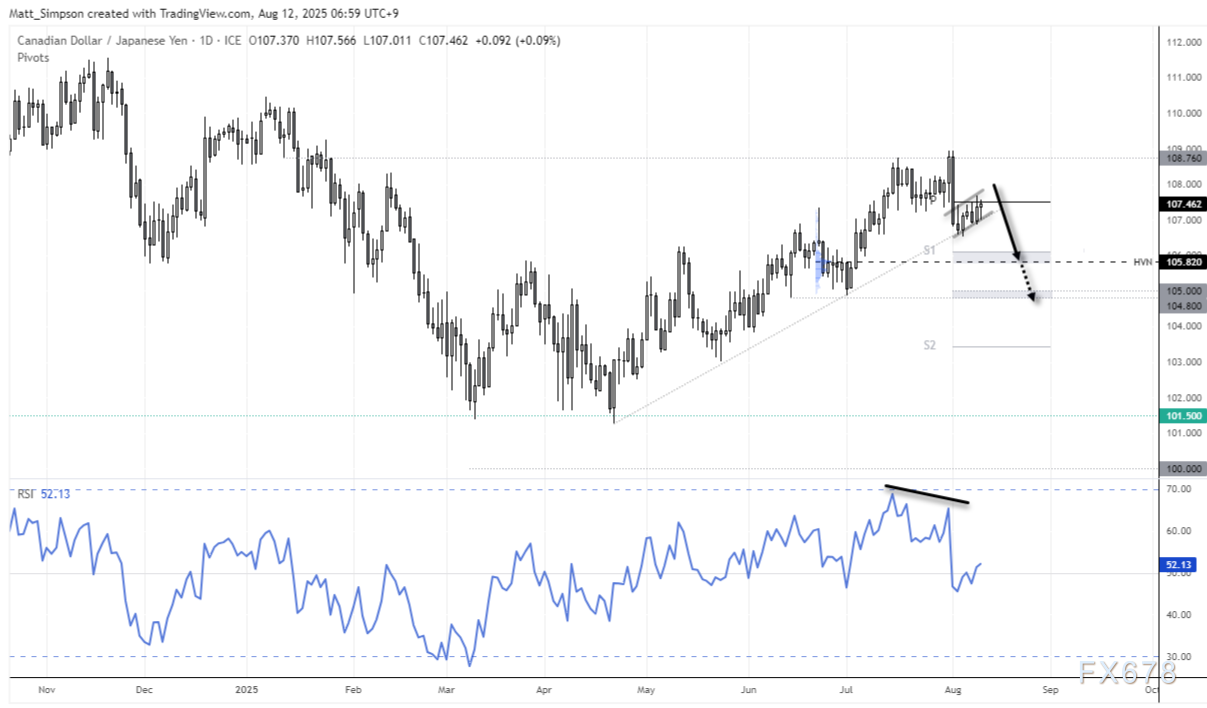 本周,加元兑日元从支撑位展开疲弱反弹,加元空头或正迎来机会窗口。尽管日元整体疲软,加元却是过去一周兑日元表现最弱的货币之一。若日元迎来更广泛走强,加元兑日元的跌幅可能远超其他主要货币对。