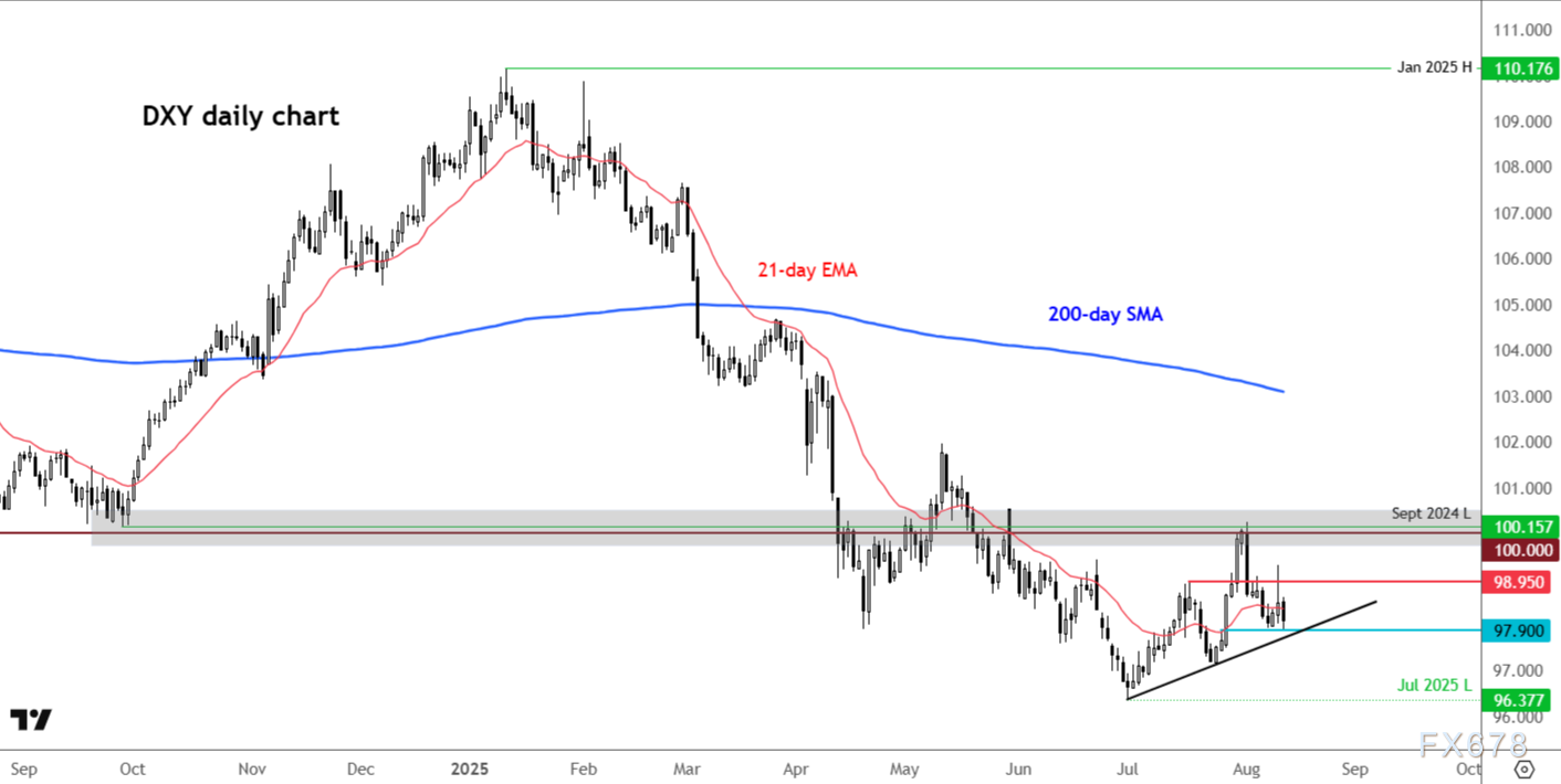 盈凯外汇官网报道——美元汇率因周二(8月12日)通胀数据公布而走低至近两周低位,该数据基本符合市场预期,且关税成本仍被静默消化在企业利润率中,并未转嫁给消费者。这为美联储应对疲软的就业数据提供了政策空间,很可能从9月开始启动降息。当前市场正押注这一预期,关于年内还将降息两次的猜测也持续升温。特朗普在社交媒体上对鲍威尔的持续抨击亦对美元形成利空,进一步加剧了美元汇率的看跌预期。