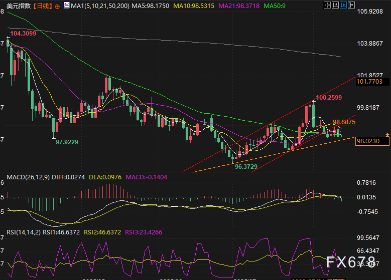技术面,美元未能保持在上升通道中运行,向上突破难度较为困难,由于日线RSI进入超卖区间,价格向下空间有限,容易出现出现假突破之后转为箱体震荡。