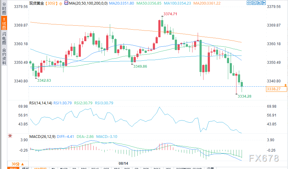 通胀数据公布后,黄金市场在初步反应中遭遇了新一轮抛售压力。截至北京时间23:20,现货黄金价格报每盎司3339美元,当日下跌0.50%。