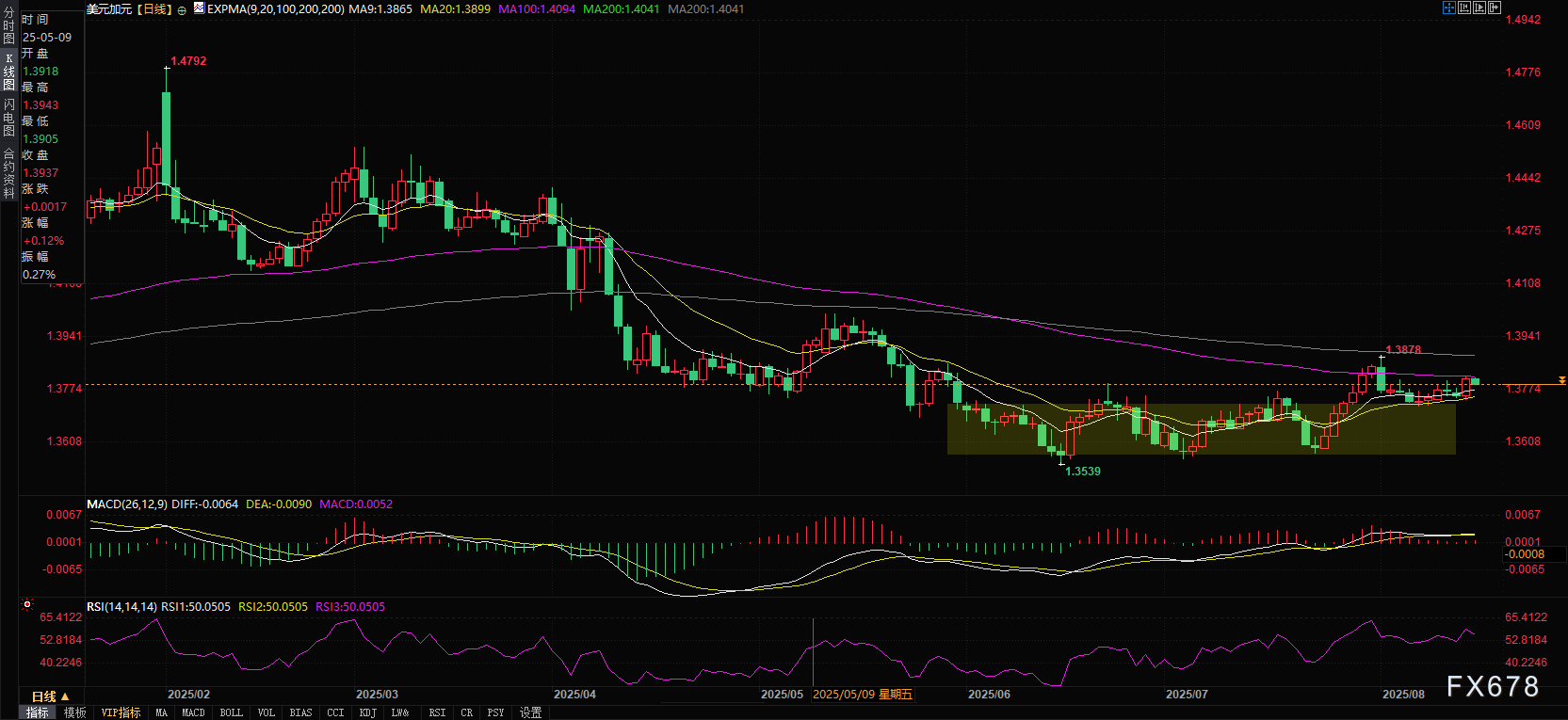 汇价能否测试1.40心理关口(接近2022年高点1.3977),将取决于美联储对特朗普政府要求加大降息力度的抵抗程度。加拿大央行政策预期同样关键,下周公布的加拿大通胀数据将成为重要风向标。