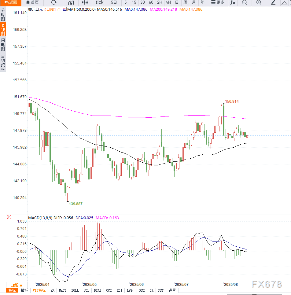美联储是否在9月释放更清晰的降息信号,将成为决定区间突破方向的关键。短期内,美元兑日元仍可能维持震荡格局,突破的时机或在杰克逊霍尔会议之后出现。