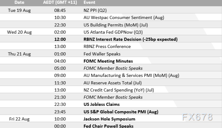 交易员们正急切地搜集任何可能指向杰克逊霍尔年会政策线索的蛛丝马迹。在此背景下,当周初请失业金数据的重要性陡然提升——鉴于此前非农数据的疲软表现,美元空头可能抓住任何就业市场走弱的迹象大做文章。标普全球PMI初值报告也将受到严格检视,特别是新订单、出口订单、就业及“支付价格”等分项指标,都将成为市场解读美联储政策走向的重要密码。
