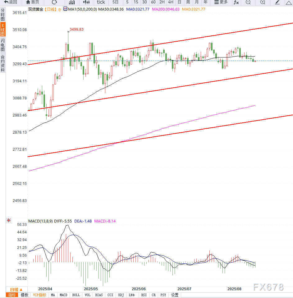 近期公布的美国7月生产者物价指数(PPI)显示价格压力回升,导致市场大幅削减了对“超大幅降息”的押注。美元连续第三日上涨,创逾一周新高,成为打压金价的核心因素。