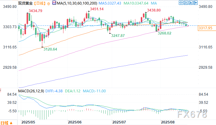 北京时间8月20日11:55 现货黄金 报 3317.95 美元/盎司