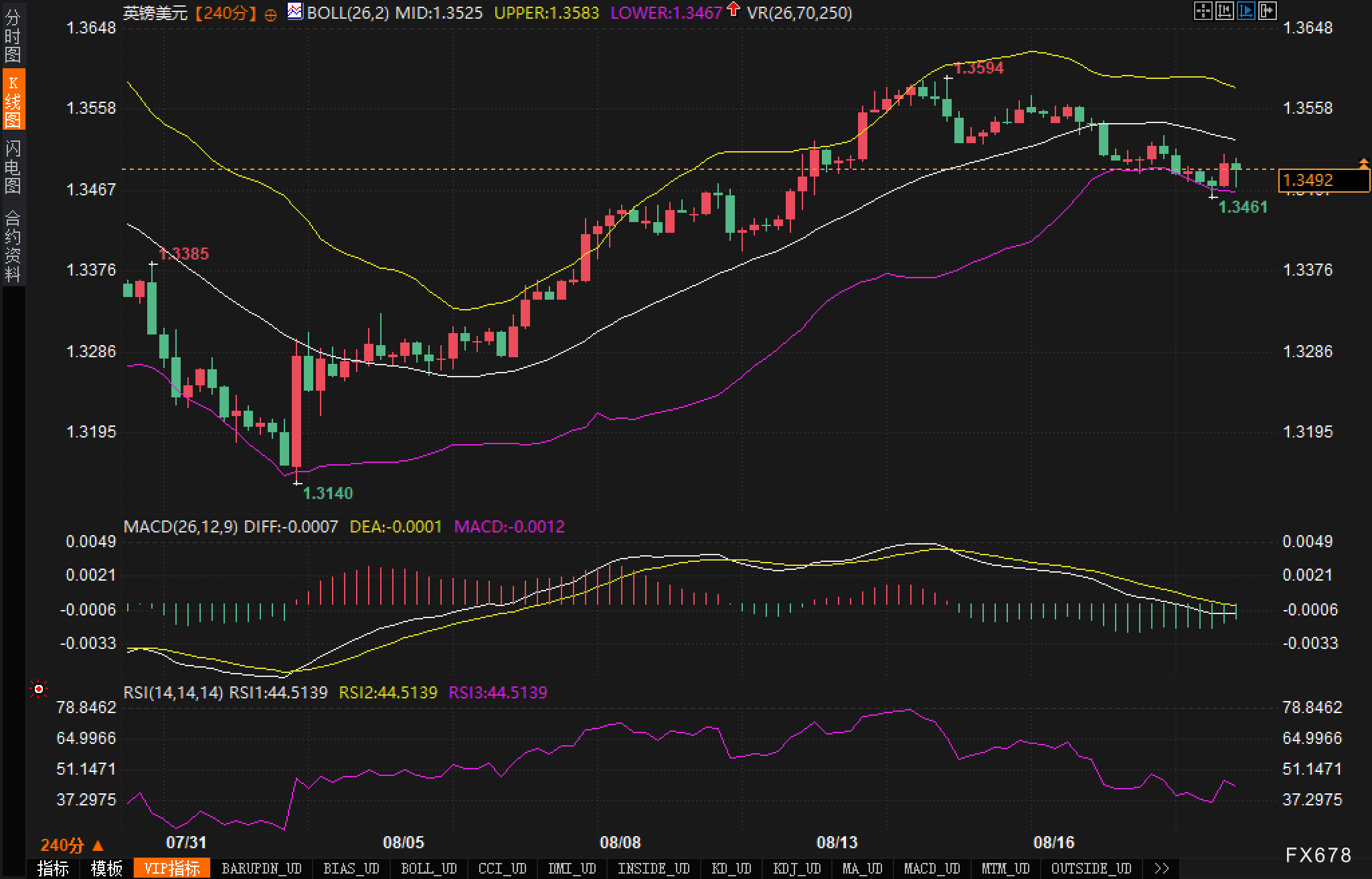 中期(数周维度):基本面上,7月通胀的回弹与英央行谨慎放松的立场相匹配,但终端需求能否在能源与食品价格不确定性中保持韧性仍待验证;美国方面,若9月如期降息25个基点但口径偏鹰,美元的回落幅度或受限。综合量化指标与图形结构,英镑中期更大的可能是“先行震荡、再择方向”。在未出现决定性基本面催化前,1.3467—1.3594区间预计将反复成为交易员博弈的主战场。