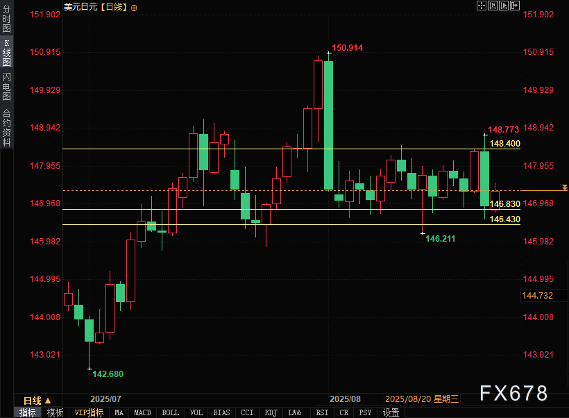 美联储主席鲍威尔在杰克逊霍尔年会上的讲话暗示美联储可能调整政策立场,市场对美联储9月降息的预期显著升温,美元或将因此承压,此为美元兑日元走弱的主要因素。