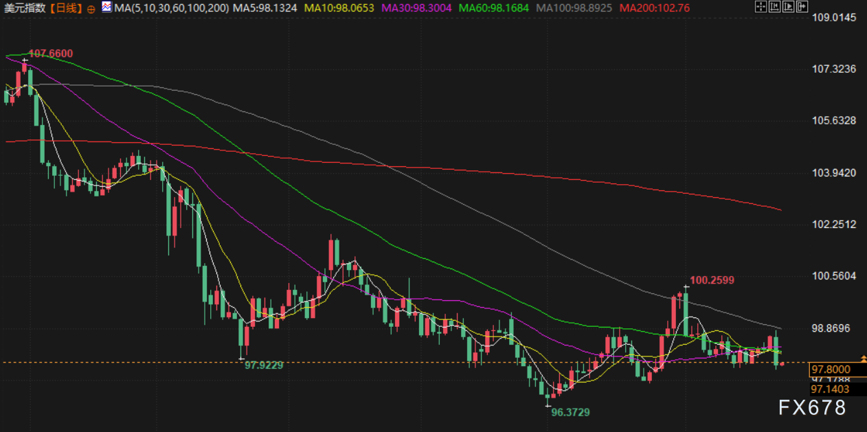 美元指数上周五下跌 0.96%,报97.66点,鲍威尔发表讲话前该指数交投于98.7点附近。此前美联储主席鲍威尔指出可能在9月会议上降息但未做出承诺。