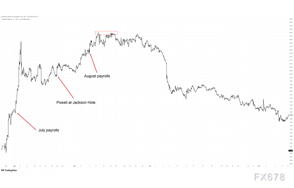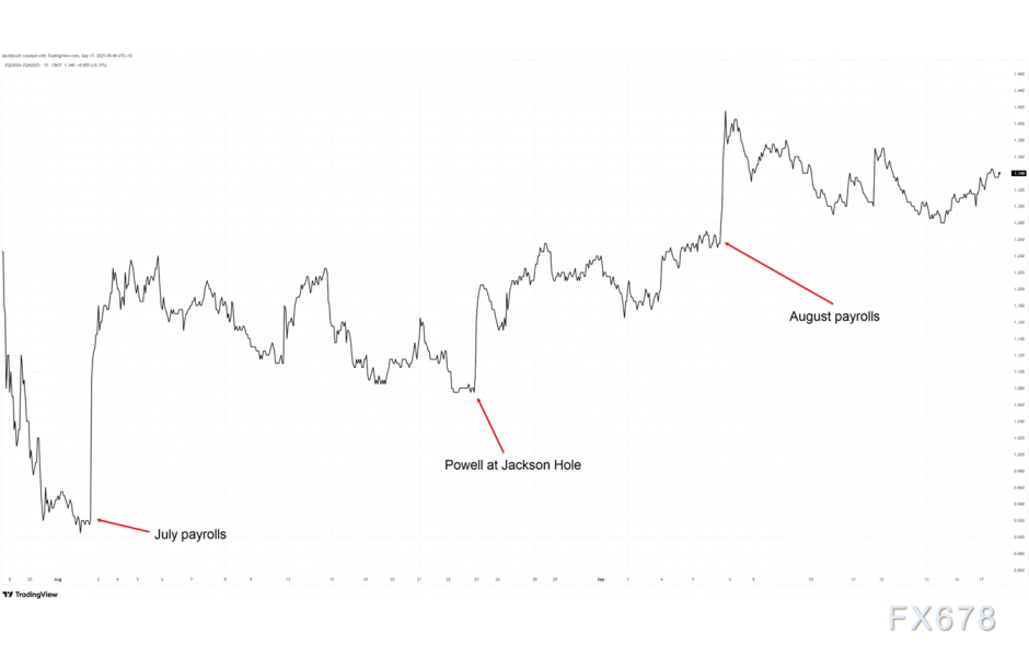 回顾2024年同期,美元指数触底反弹,随后数月因市场对美联储降息预期重大修正而飙升10%。夏季非农报告的疲软最终被证明是劳动力市场的巨大虚假信号。纵观当前态势,美元走势很可能即将历史重演。