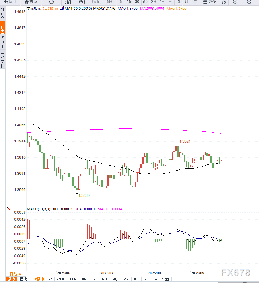 相反,若跌破1.3750支撑,则可能引发新一轮回调,下方关注1.3700的关键水平。整体来看,震荡区间仍在1.3750—1.3830之间。