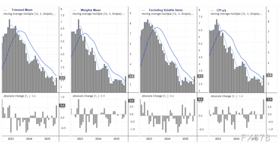 周三即将公布的通胀报告将成为市场关注焦点,旨在研判7月CPI急剧上涨究竟是主要源于电力补贴到期,还是价格压力已呈现广泛扩散态势。尽管7月修正平均CPI(剔除波动性最高的15%成分)上升0.6个百分点,但这一指标暗示通胀回升可能由补贴政策驱动。