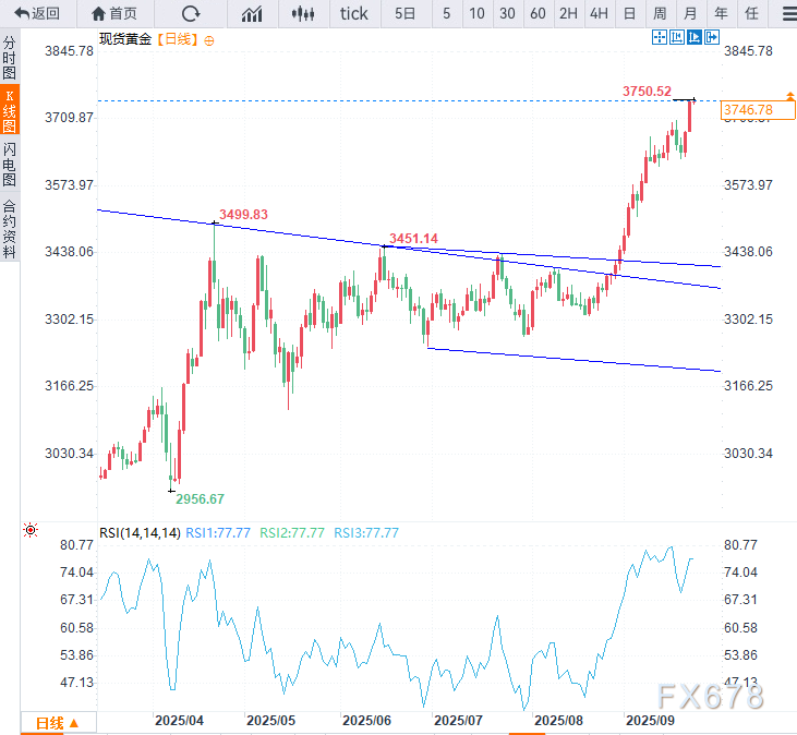 下行方面,若金价跌破3700美元支撑位,可能下探3650美元水平,以及9月11日低点3613美元和3600美元整数关口。