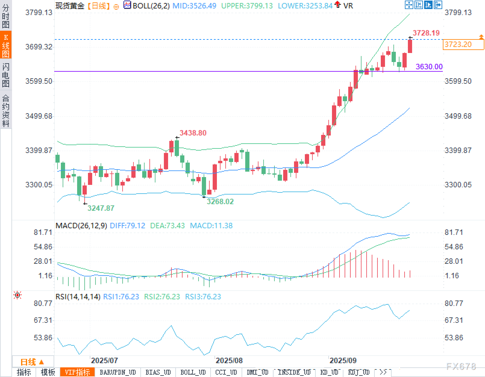 关键点位上,前高3438.80与前低3247.87/3268.02构成中期的“抬升底—抬升高”的上升通道锚点,趋势线的斜率并未被破坏。综合判定:3728.19—3799.13构成短线阻力带,3630.00为强势趋势的首要回测位,3526.49为趋势拐点的“最后防线”。