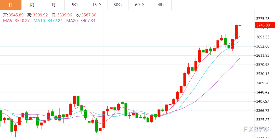 现货金上涨1.7%,创下每盎司3748.62美元的历史新高。12月交割的美国期金收高1.9%,报3775.10美元。