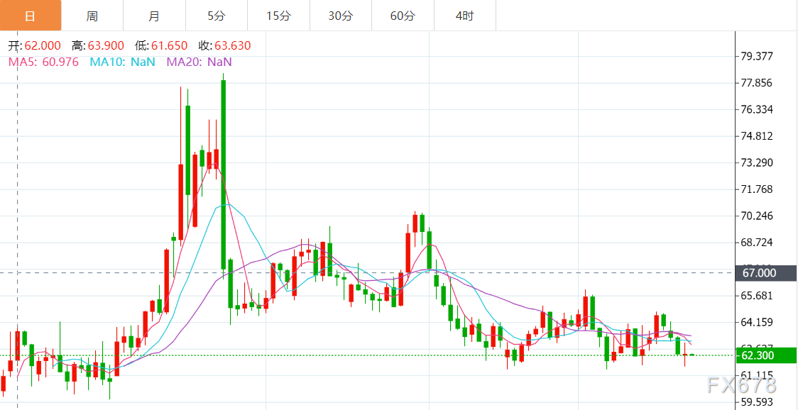 周一到期的美国原油(WTI)10月合约收于每桶62.64美元,下跌0.1%。交投更为活跃的次月合约收于每桶62.28美元,下跌0.2%。