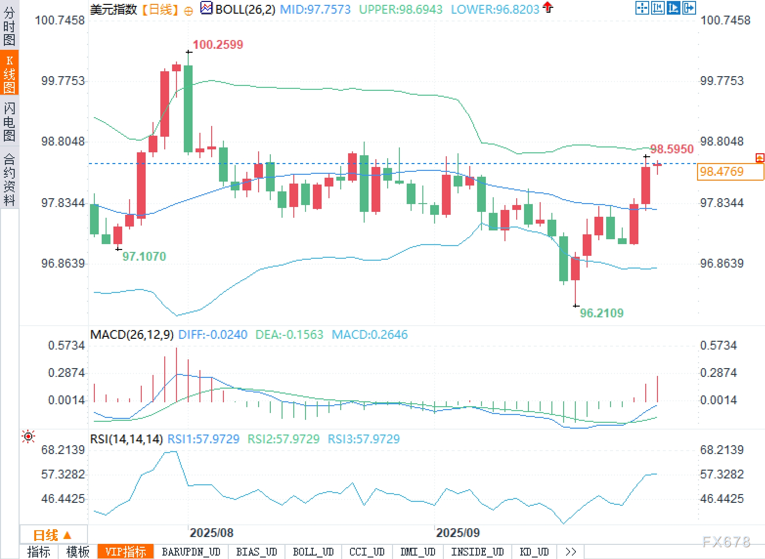 情景C(偏冷):核心月率≤0.1%。联储年内节奏可能被前移或幅度被强化,美元指数或出现加速回撤,先看97.7573,跌破则指向96.8203,若配合MACD重新转弱与RSI跌回50下方,则阶段性切换为高位整理—向中轨回归的态势。