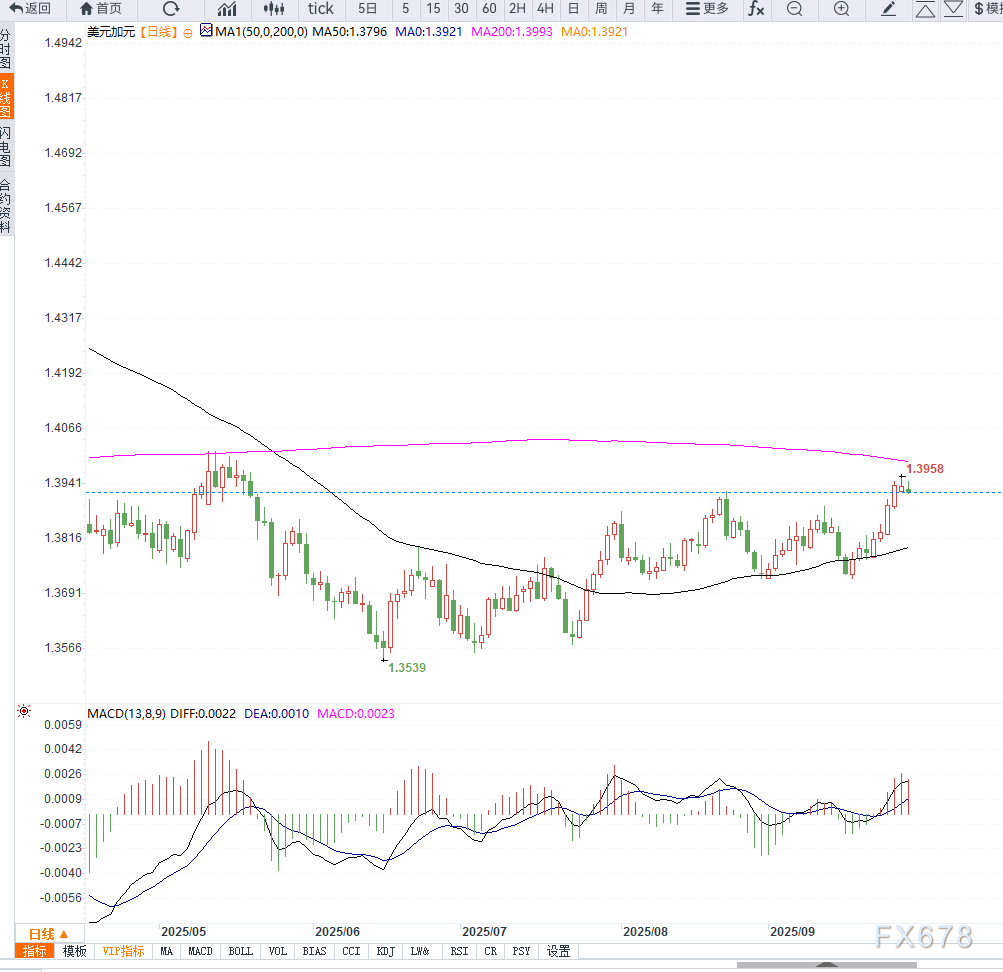 美元/加元的走势受到美元降息预期、美国政府关门风险及油价波动的多重影响。短期内,应关注美联储官员讲话、美国财政拨款进展以及油价动态,以判断汇价进一步方向。USD/CAD可能在震荡中等待明确的政策或供应信号触发新一轮趋势。