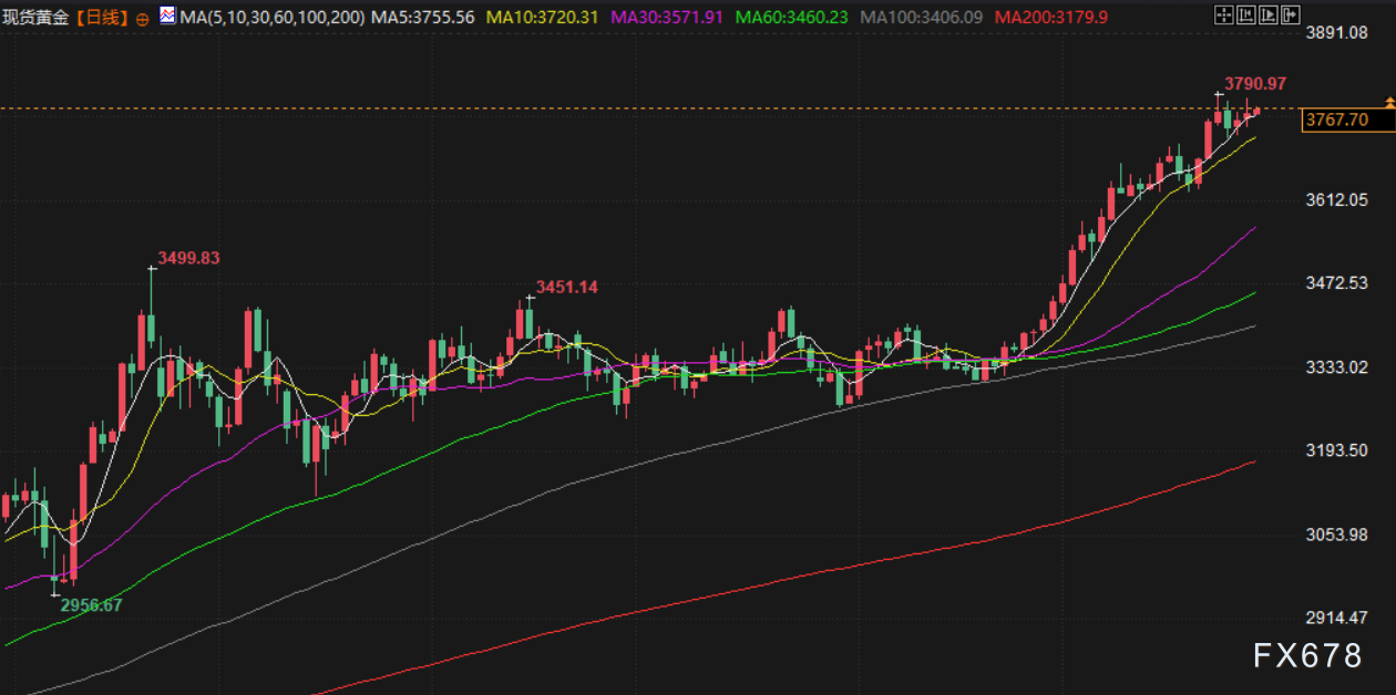 盈凯外汇官网报道——周一(北京时间9月29日),现货黄金交投于3767.12美元/盎司附近,金价上周曾触及创纪录的3790.97美元/盎司,美国经济数据加强了美联储今年晚些时候可能继续降息的押注;美原油交投于65.02美元/桶附近,上周五一度触及8月初以来最高至66.42美元/桶,但库尔德斯坦地区周六恢复原油出口,美油最终收低于65.19美元/桶,且俄罗斯外长表示,愿通过对话解决冲突,对与美对话抱有一定期望,限制油价涨幅。