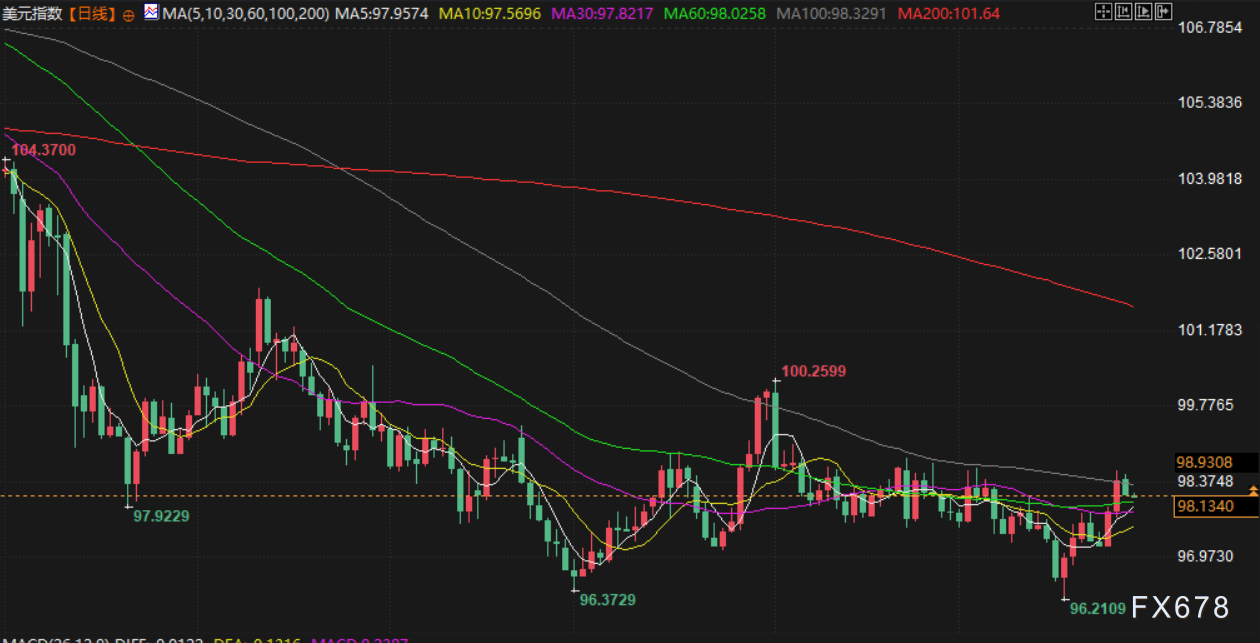 美元指数下跌 0.33%, 至 98.17,但仍连续第二周上涨。里奇蒙联邦储备银行主席巴尔金上周五表示,他认为失业率或通胀率大幅上升的风险均有限,这让美联储能够在讨论进一步降息时平衡其两大目标。