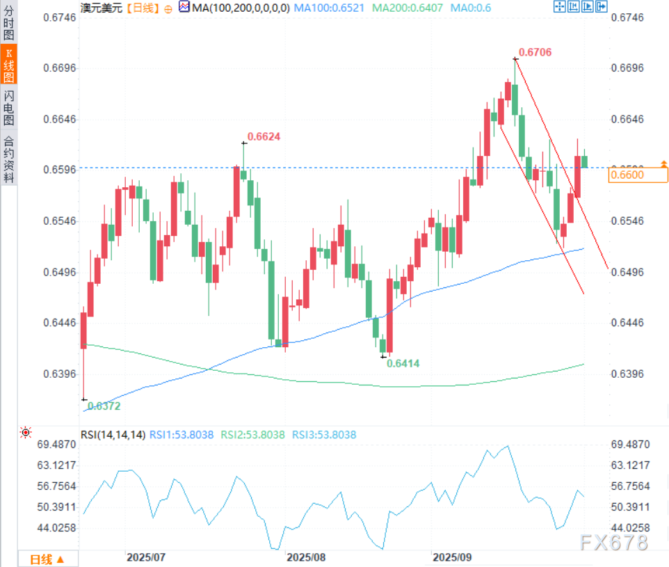 从技术层面看,澳元兑美元在100日均线(0.6521)获得支撑后开启反弹。