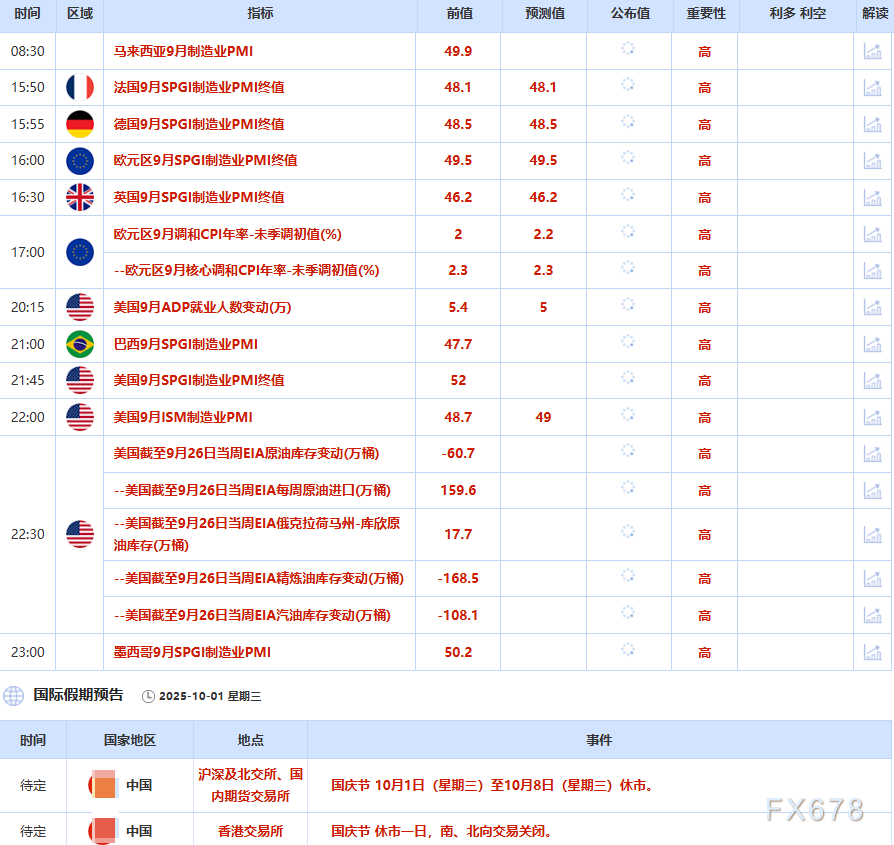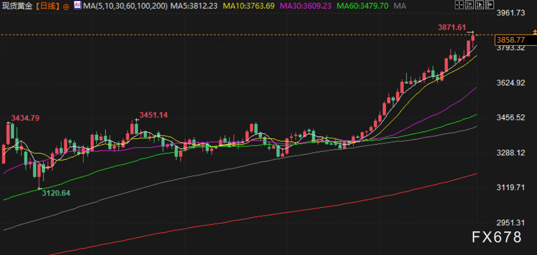 盈凯外汇官网报道——周三(北京时间10月1日),现货黄金交投于3860美元/盎司附近,金价周二一度创下3871.61美元的纪录新高,投资者担忧美国政府即将停摆,且不佳就业数据强化了对美联储的降息预期。9月黄金上涨 11.9%,创下2011年 8月以来的最大月线涨幅,季度上涨16.82%;美原油交投于62.50美元/桶附近,油价周二收低,投资者担心供应过剩,OPEC+可能计划11月大幅提高石油产量,且伊拉克库尔德斯坦通过土耳其的石油出口恢复。