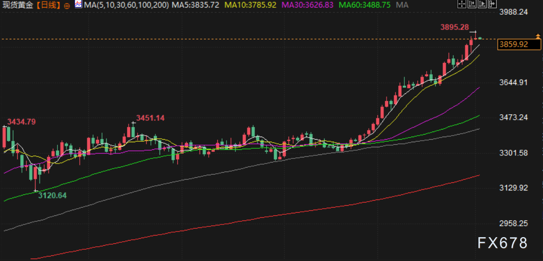 金价周三飙升至纪录高位,受美元走软和美国政府关门引发的避险需求提振,同时疲软的就业数据强化了市场对美联储本月降息的预期。