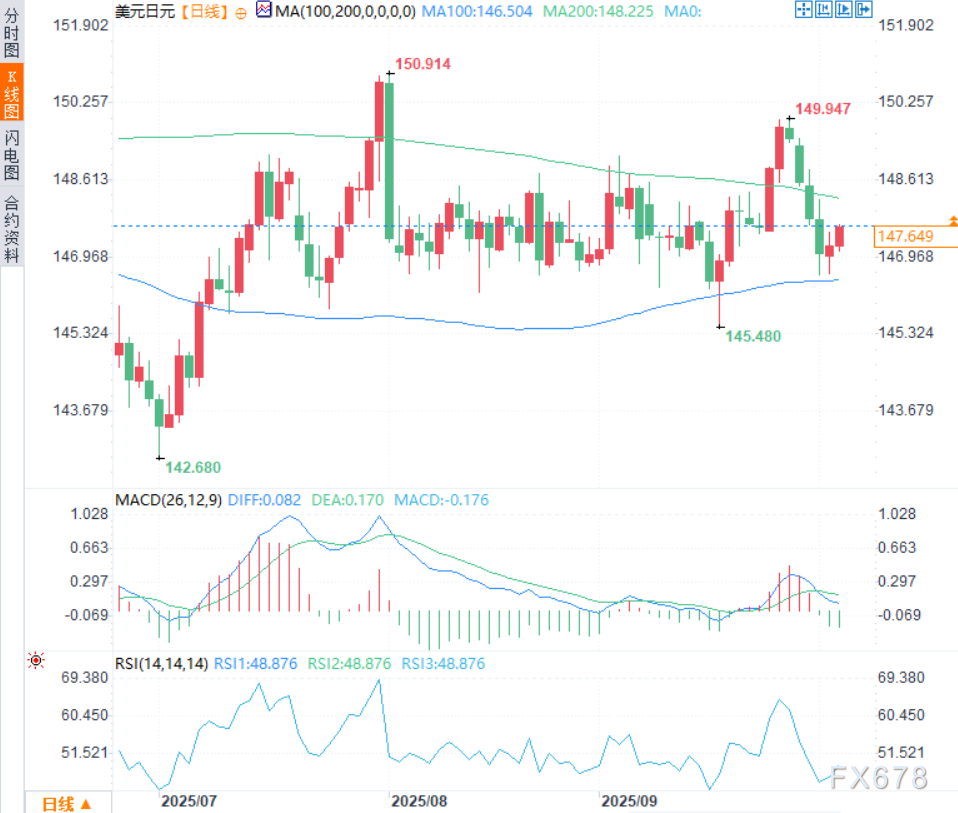 美元兑日元在147.00关口下方展现韧性,周四再度自位于146.50的100日移动均线支撑位上方反弹,连续两日录得回升。