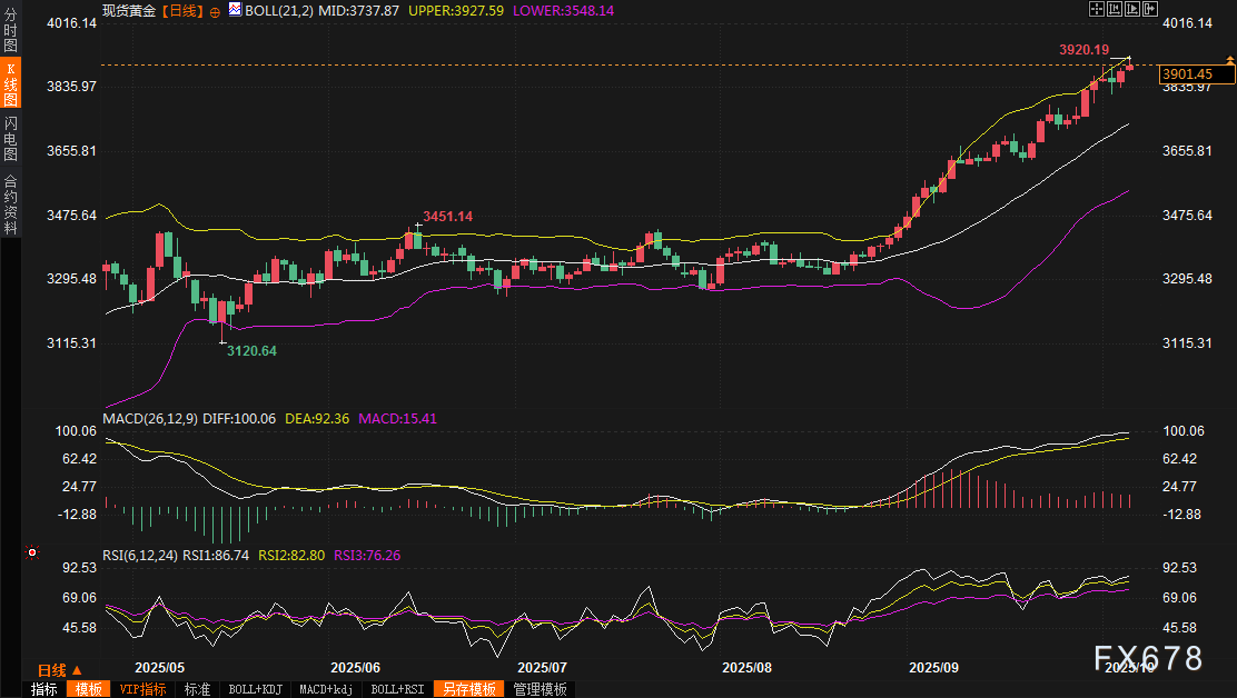 盈凯外汇官网报道——周一(10月6日)亚市早盘,黄金价格如脱缰野马般直冲云霄,现货黄金一度飙升逾40美元,至3920美元/盎司,再度创下历史新高。这不仅仅是一场数字上的狂欢,更是多重宏观风暴交织下的避险盛宴。从日本政坛的意外转向,到美国美联储的降息预期如火如荼,再到华盛顿政府关机的政治僵局,这些因素合力点燃了黄金的熊熊烈火。短短不到10天,黄金从首次突破3800美元关口,一跃迈过3900大关,涨幅之猛烈,让投资者既惊叹又兴奋。黄金作为永恒的避险资产,在不确定性笼罩的世界中,正迎来属于它的黄金时代。