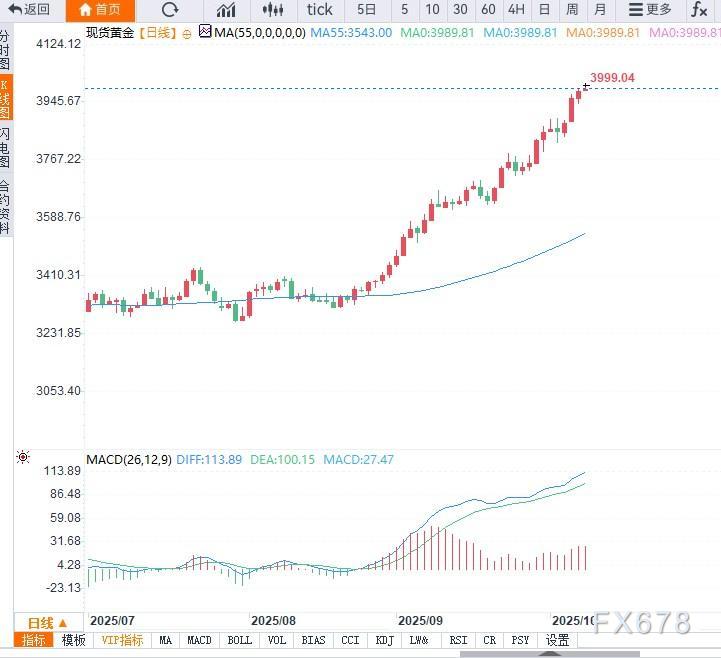从技术面看,黄金价格正测试3990-4000美元区间的关键阻力位。若突破4000美元并稳站其上,下一目标或为4050美元/盎司。