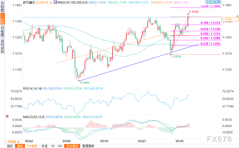 欧元在1.1200上方形成底部,并开启对美元的新一轮上涨。欧元/美元突破1.1280阻力位,走势偏多。