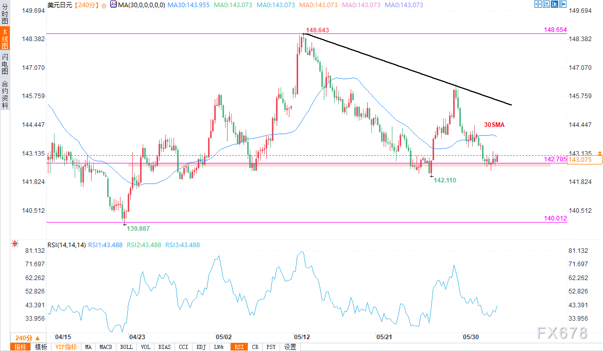 此外,尽管价格在142.55水平出现强劲反弹,但仅形成较低的高点,这表明多头无法维持在30周期SMA上方的涨势。因此,空头卷土重来,将美元/日元推至该均线下方。