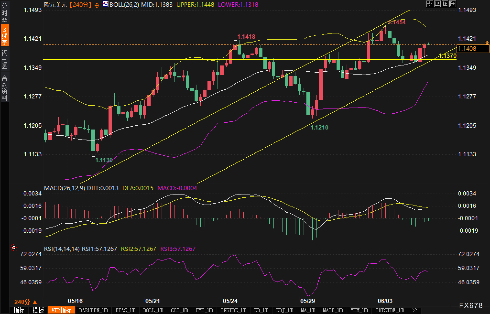 美国方面,ADP就业数据远逊预期,5月私营部门仅新增3.7万个就业岗位,大幅低于11.5万的市场预期。这一疲软数据引发美元回落,助推欧元兑美元反弹至1.1400区域。