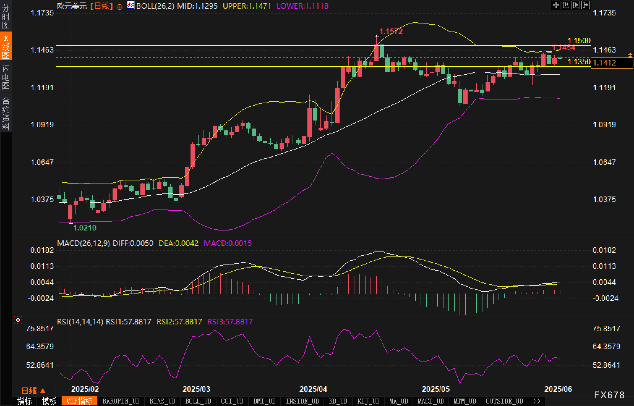 从盘面来看,欧元多头情绪有所增强,但未形成一致性共识。若欧洲央行释放偏鸽立场,市场可能再度审视欧洲宽松路径;反之,若暗示7月暂停,可能刺激欧元短线上扬。当前1.14区域成为多空分水岭,若站稳,情绪或转向乐观,反之将重回谨慎。