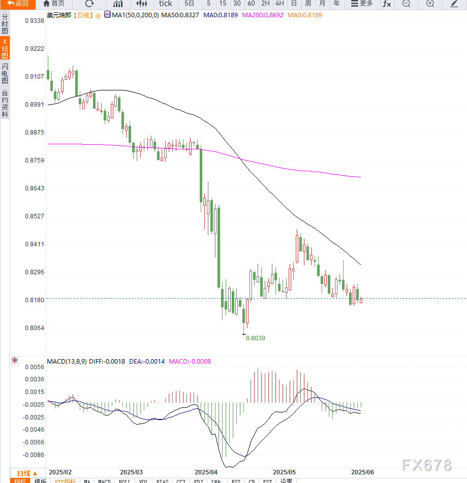 当前市场焦点集中于非农就业数据,一旦确认美国劳动力市场明显走弱,将可能令USD/CHF跌破0.8200并启动新一轮贬值行情。