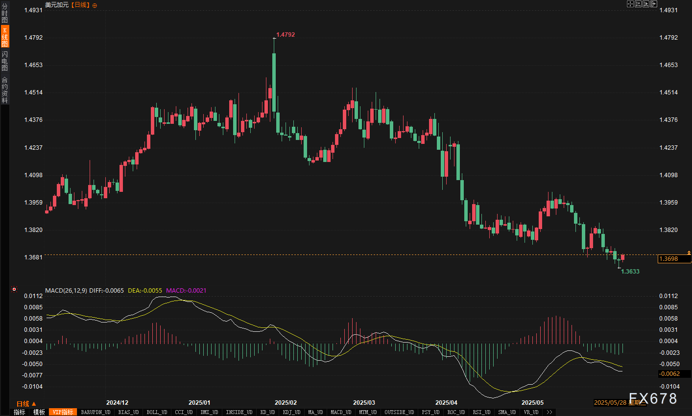 加拿大央行维持2.75%的利率不变,符合市场预期。央行表示,特朗普发起的贸易冲突仍是加拿大经济面临的最大阻力,且报复性关税的影响尚未完全体现在消费者价格数据中,暗示将采取观望态度,这一立场被视为偏鹰派。加拿大5月Ivey PMI为48.9,好于预期的48.3,显示经济活动略有改善。加拿大5月就业数据将于周五晚些时候发布,若显示劳动力市场稳健,可能进一步支撑加元。