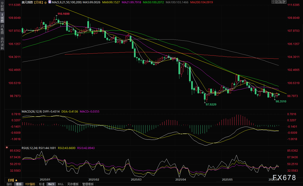 美元指数的即时阻力位在九日均线99.16。突破这一水平可能改善短期价格动能,并支持美元指数接近下降通道的上边界,大约在99.90。