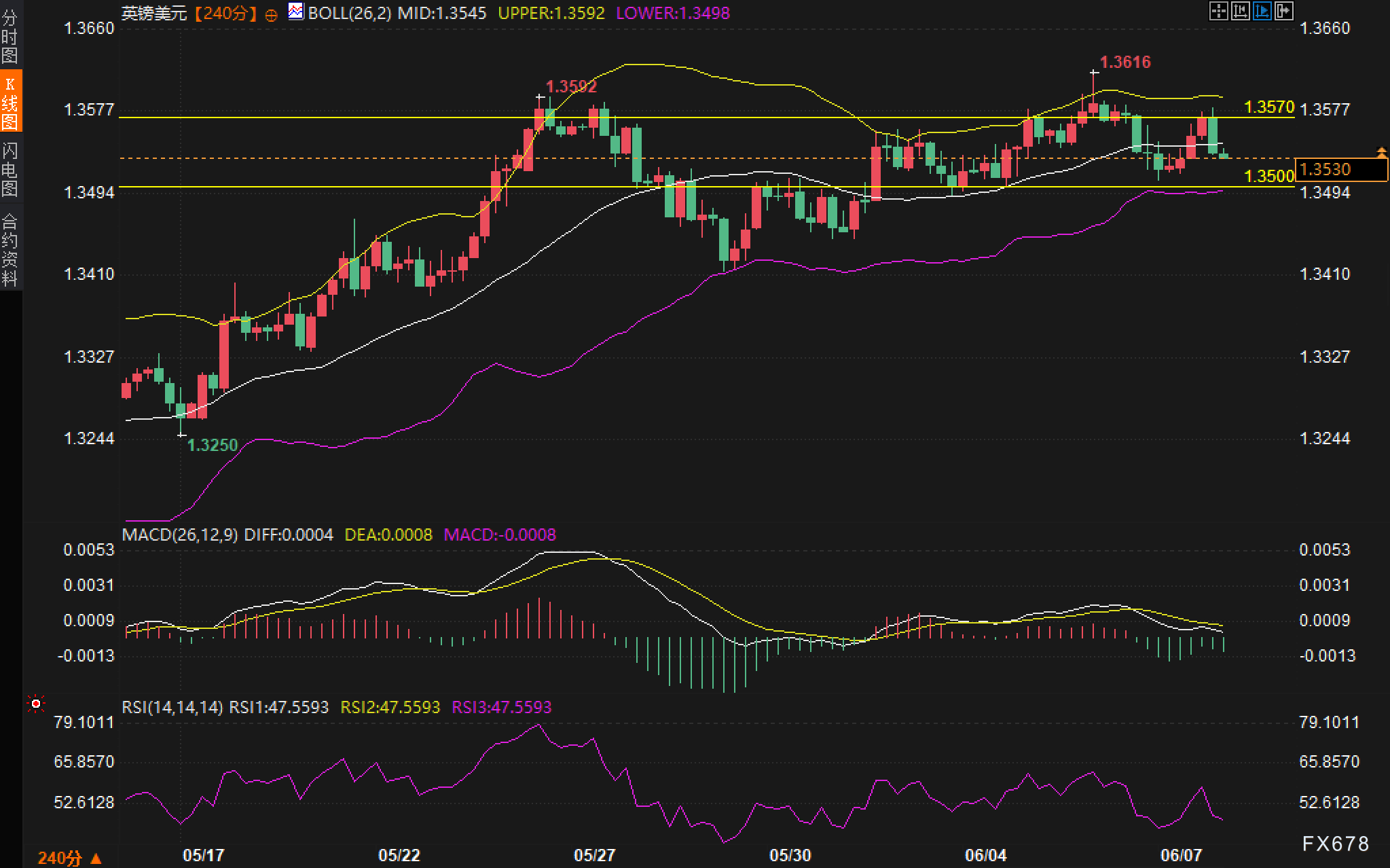 盈凯外汇官网报道——周一(6月9日),英镑兑美元在北美时段承压,交投于1.353附近。市场正在消化一系列即将出炉的英国本土数据与全球宏观风险事件,整体波动性或将放大。