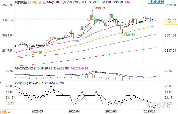 北京时间6月11日11:00 现货黄金 报 3337.65美元/盎司